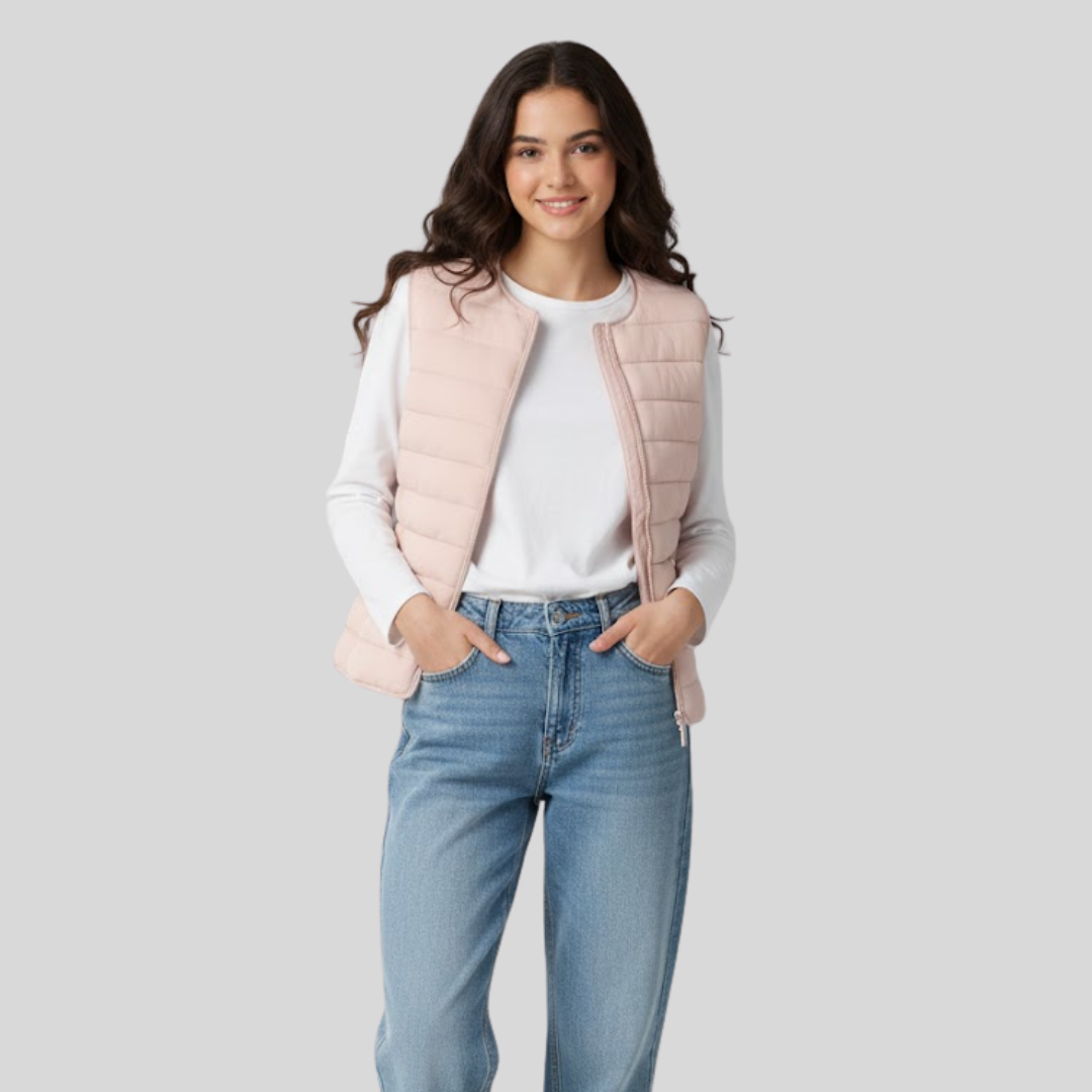 Thiết kế cổ tim tinh tế, tôn dáng và dễ kết hợp với áo thun, sơ mi hay áo len, mang đến phong cách tối giản nhưng hiện đại.