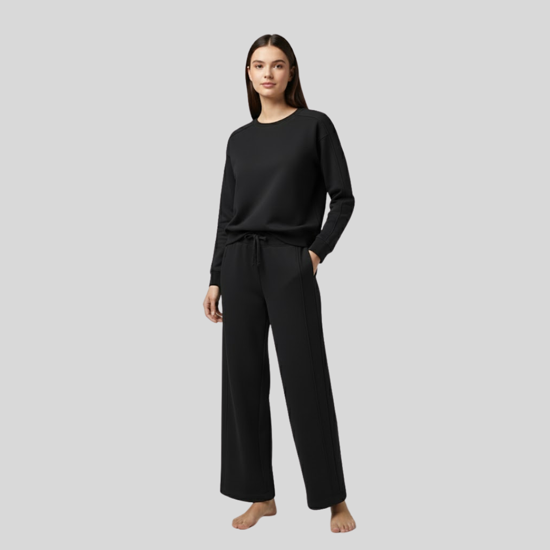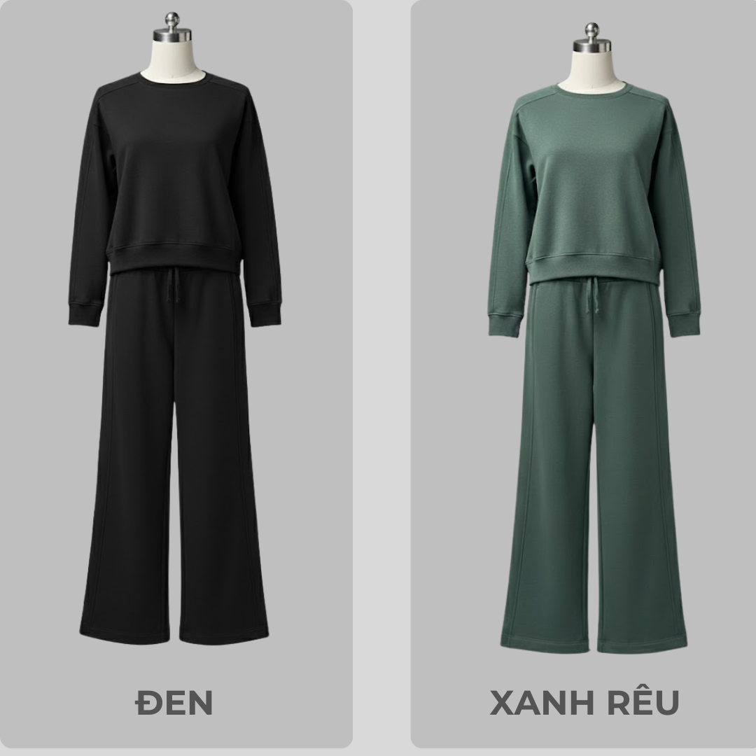 Bộ nỉ nữ Together được làm từ 88% Cotton và 12% Polyester, mang lại cảm giác mềm mại, thoáng khí mà vẫn giữ ấm hiệu quả.