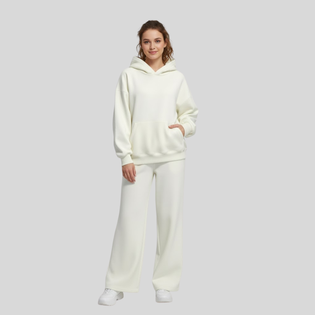 Bộ nỉ nữ Together được làm từ 96% Polyester và 4% Spandex, mang đến cảm giác mềm mại, co giãn nhẹ và giữ ấm hiệu quả trong những ngày se lạnh.